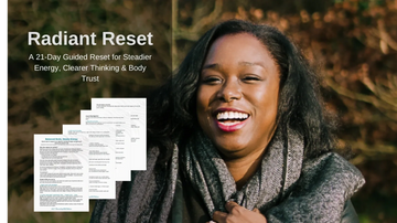A 21-day science-informed simple reset designed to stabilise energy, calm digestion, regulate blood sugar, and help your body shift out of survival mode while naturally supporting clarity and sustainable weight release.